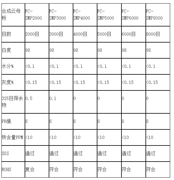 我們相關合成云母粉理化指標如下: